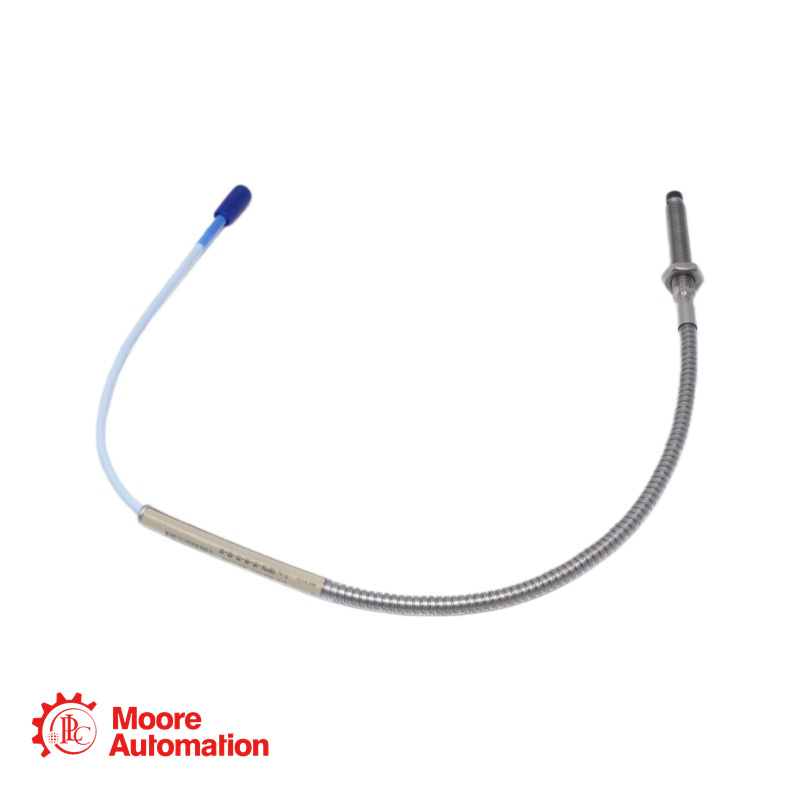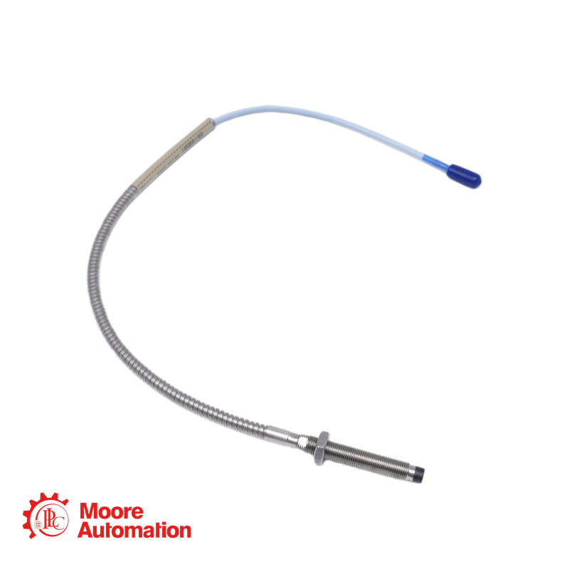 The 330104-00-06-05-01-00 is a 3300 XL 8 mm Proximity Probe with M10 x 1 threads and flexible stainless steel armor. It is part of the 3300 XL 8 mm Proximity Transducer System, which uses eddy current technology to measure static position and dynamic vibration.