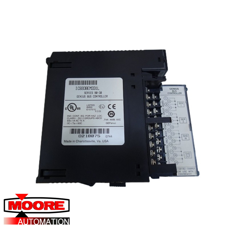 Der Series 90-30 Genius Bus Controller (GBC), Bestellnummer IC693BEM331, stellt die Schnittstelle zwischen einer SPS der Series 90-30 und einem seriellen Genius E/A-Bus bereit. Der GBC empfängt und sendet Steuerdaten von bis zu 128 Byte für bis zu 31 Geräte auf dem Genius I/O-Bus. Ein Genius BusController kann dienen: