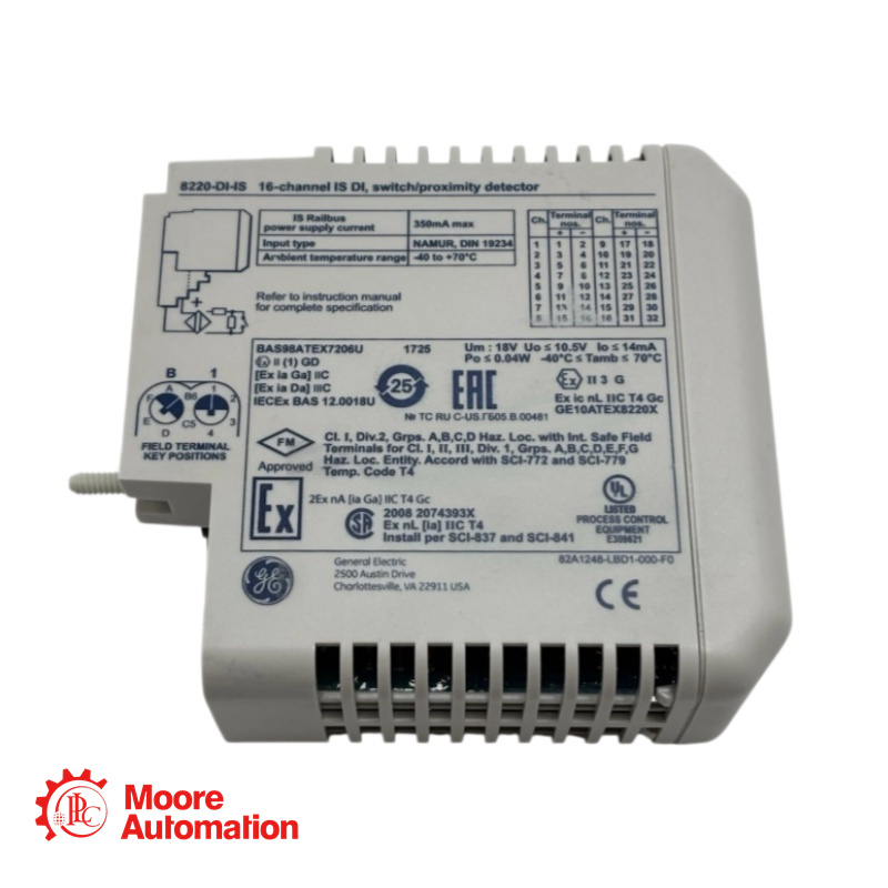 The 8220-DI-IS is a high-density, intrinsically safe input module designed to interface with up to 16 field devices located in hazardous areas. It accepts signals from dry contacts, simple apparatus, or NAMUR-compliant proximity detectors.