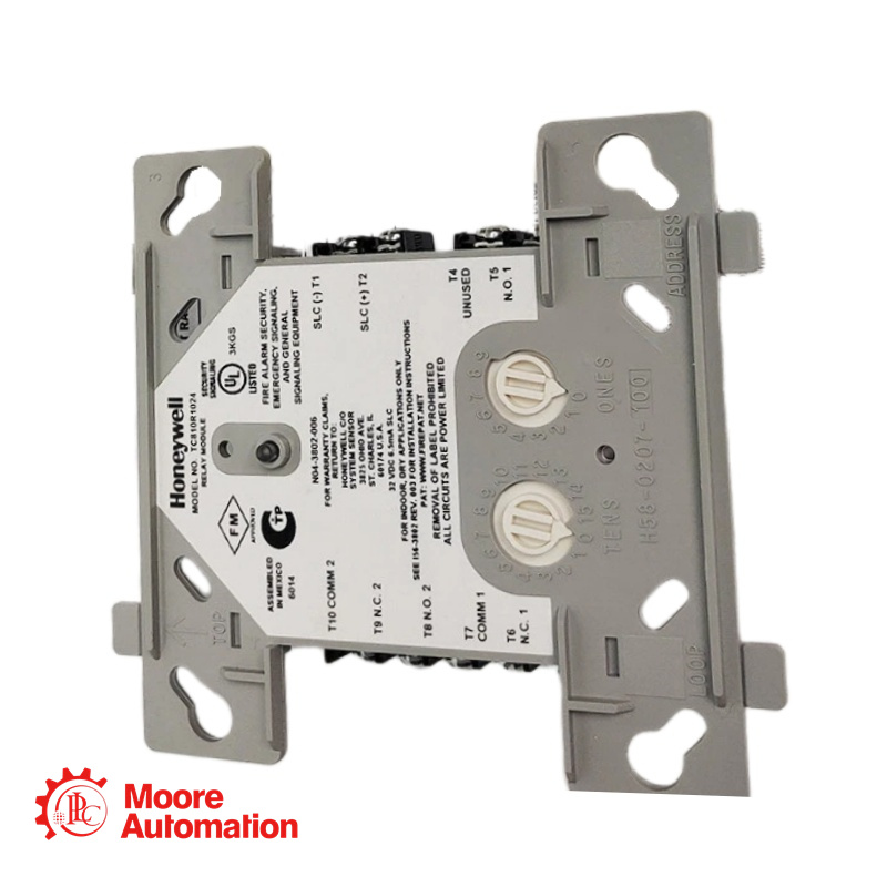 The TC810R1024 is an Intelligent Addressable Relay Module that provides Honeywell intelligent fire alarm control panels with a dry-contact output for activating a variety of auxiliary devices, such as fans, dampers, control equipment, door holders, and Air Handling Unit (AHU) shutdown applications.